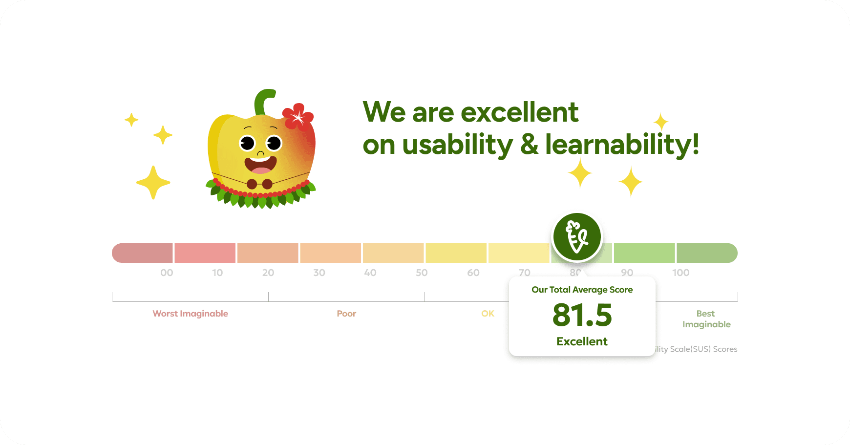 We successfully shifted users’ perceptions of the unique vegetables and achieved an excellent result on the System Usability Scale (SUS).